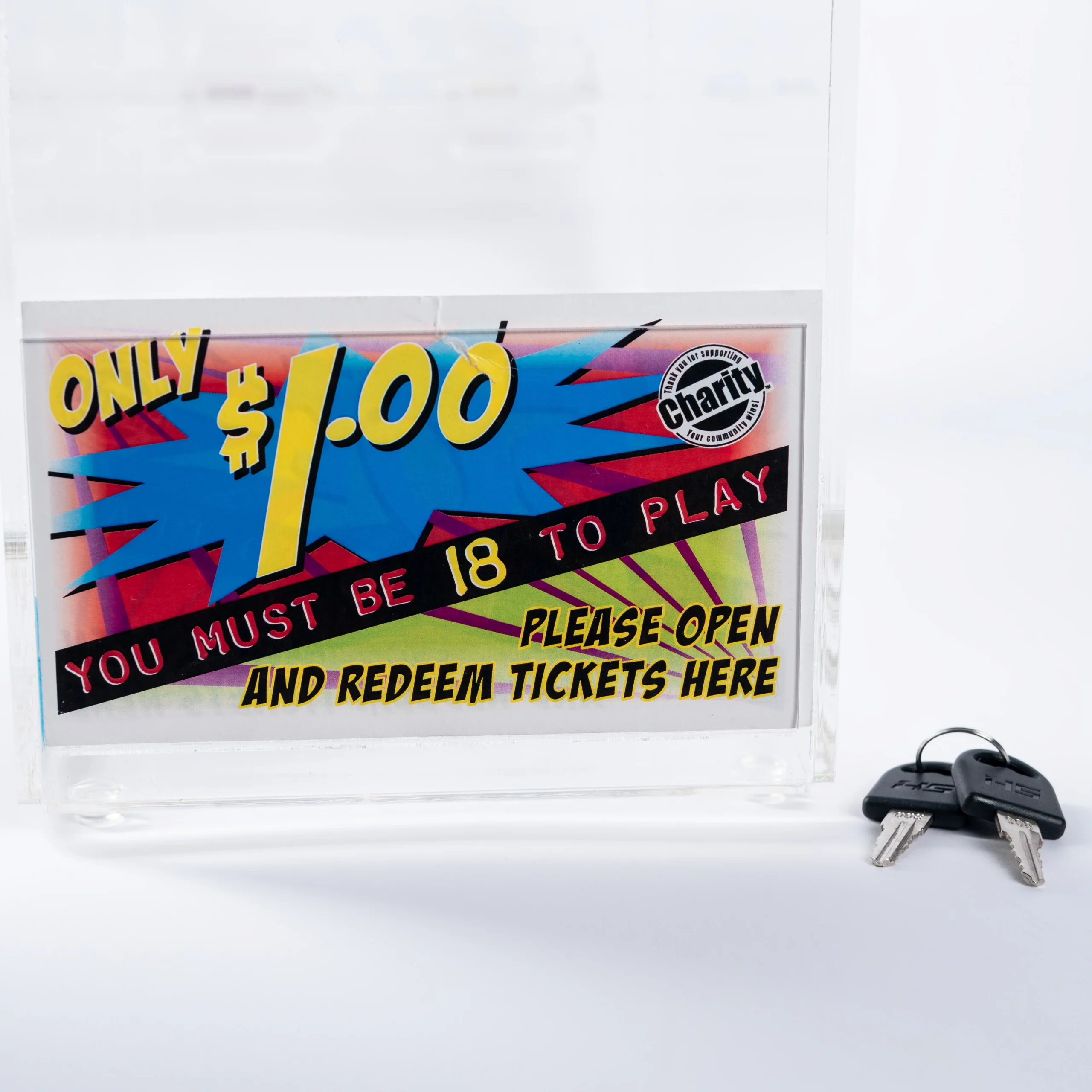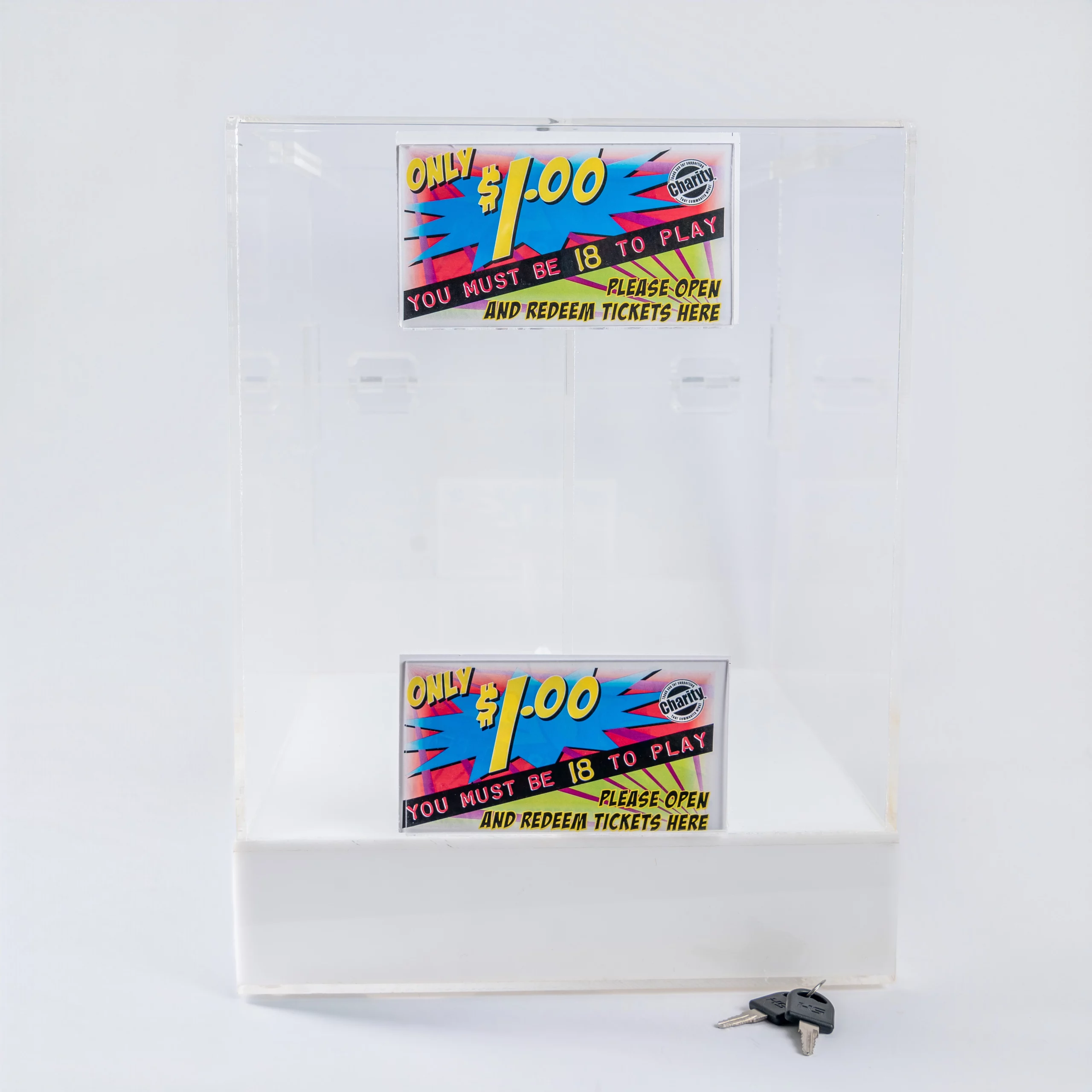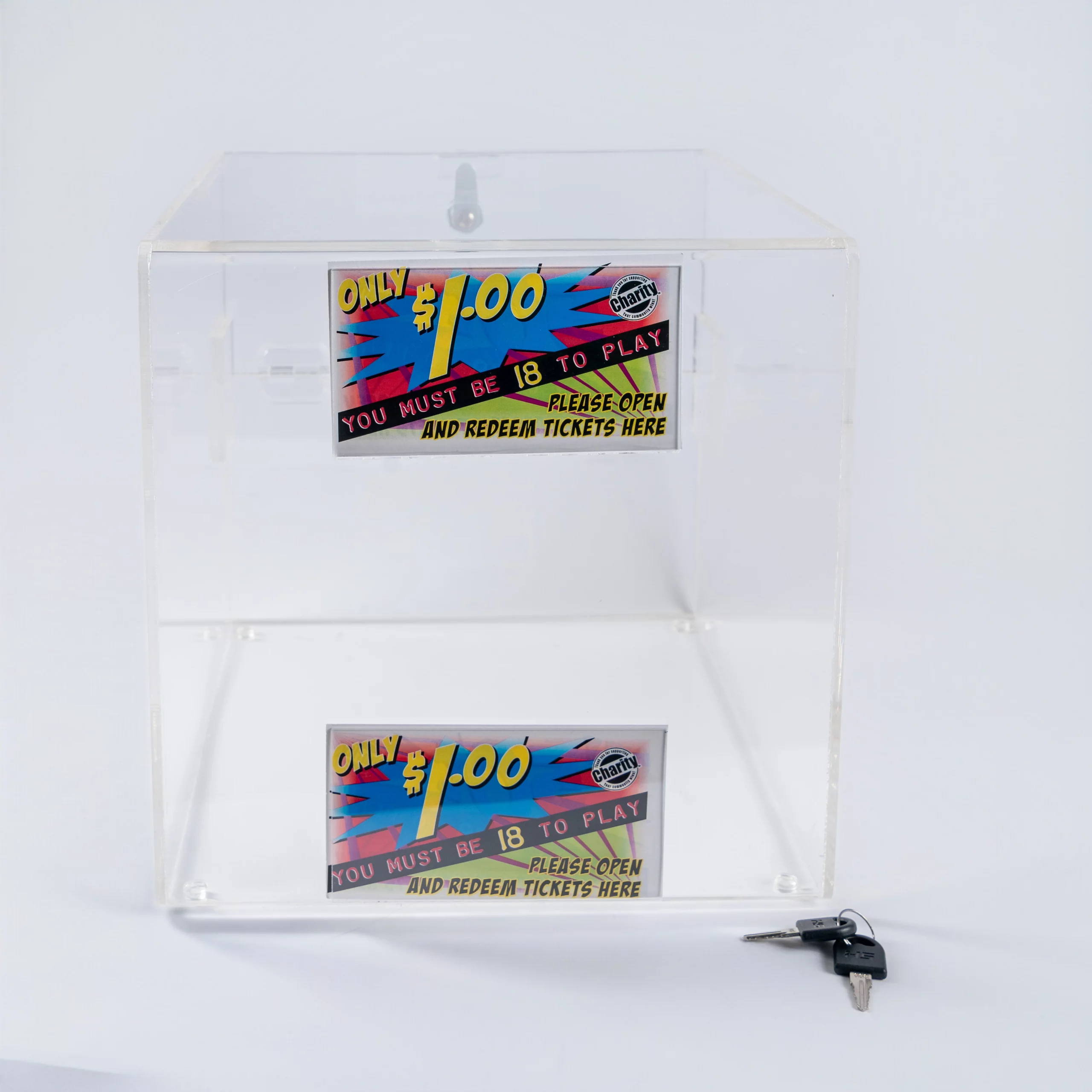 Keep your tickets, ballots, and promotional materials neatly organized and securely displayed with our durable acrylic ticket containers. Designed for charity fundraisers, retail counters, and gaming events.