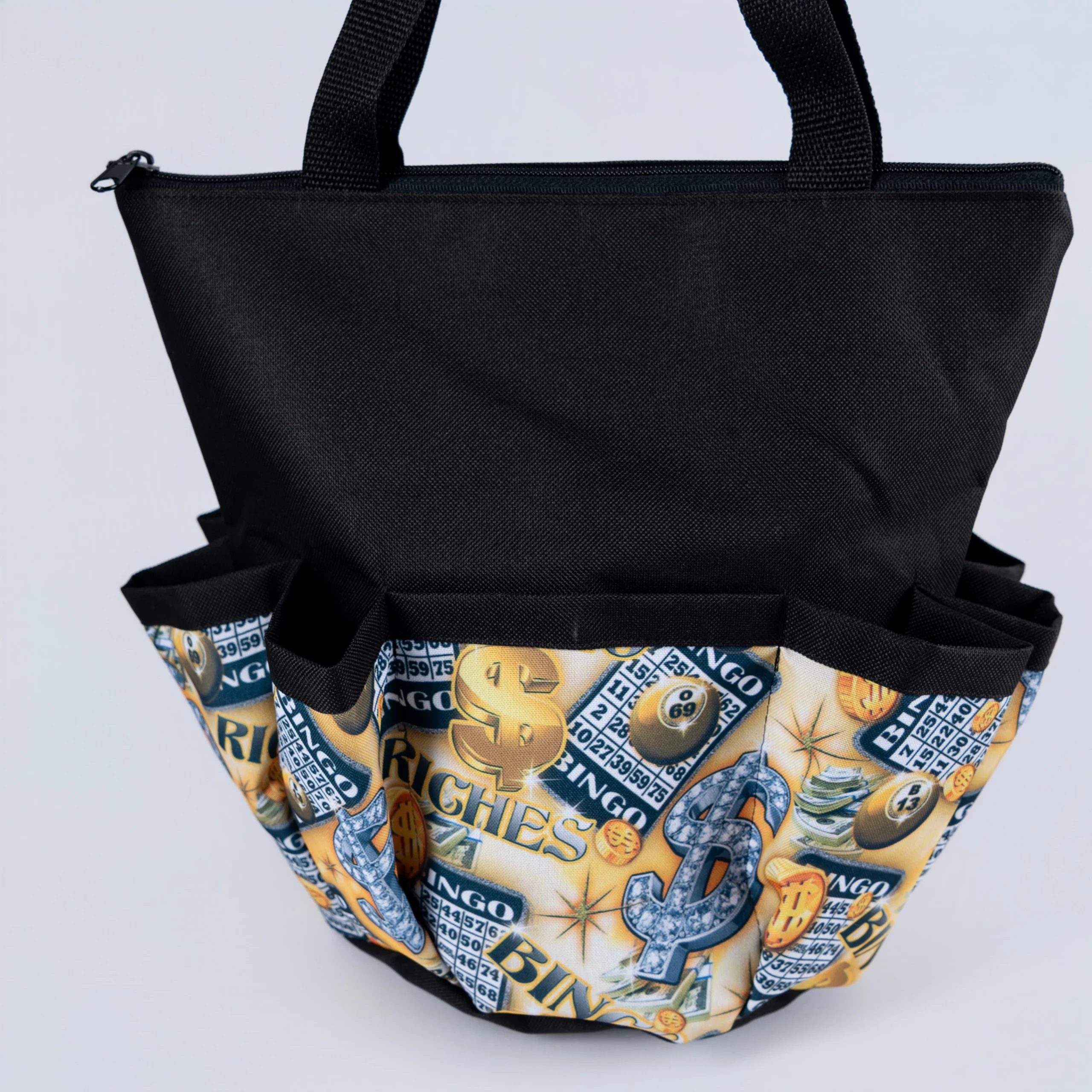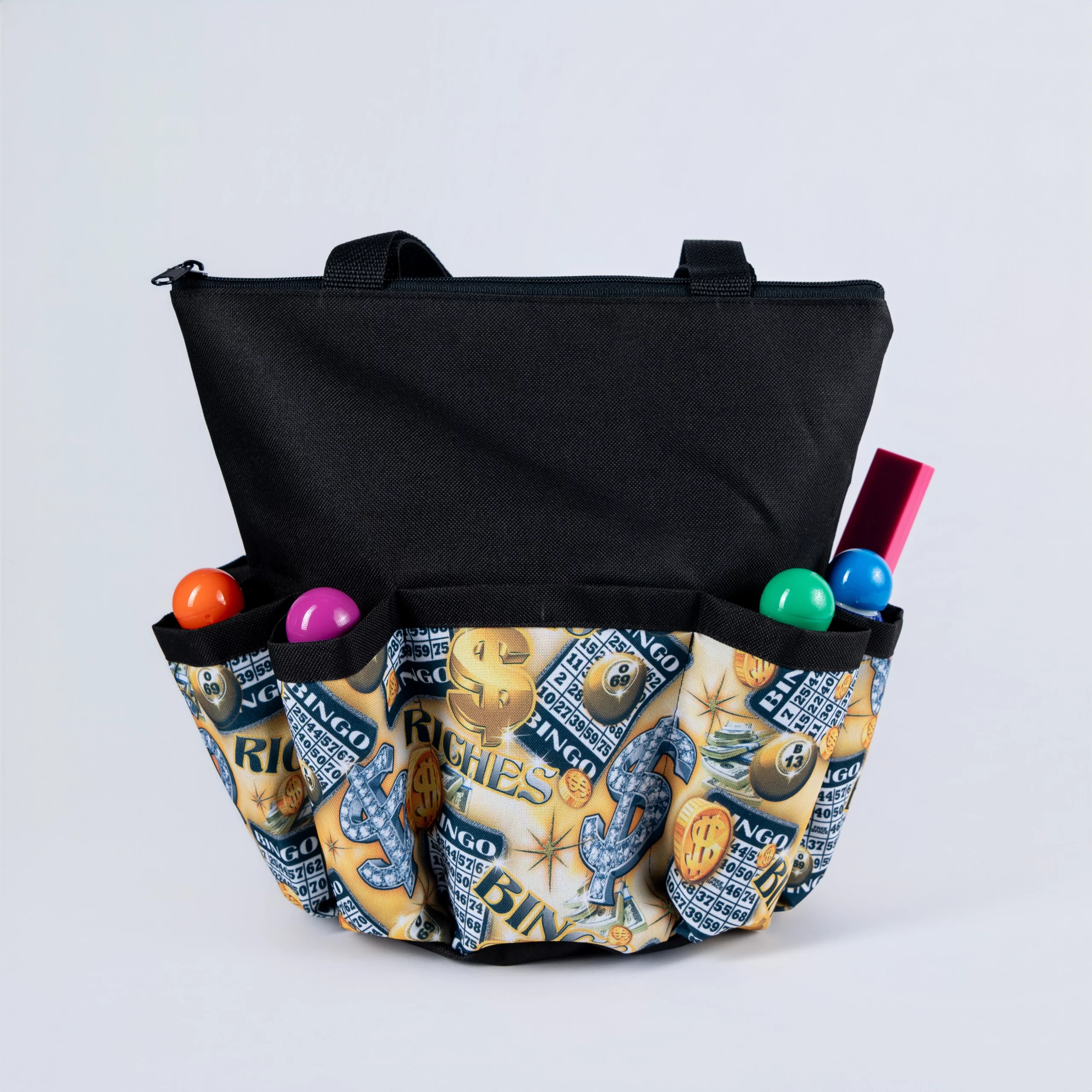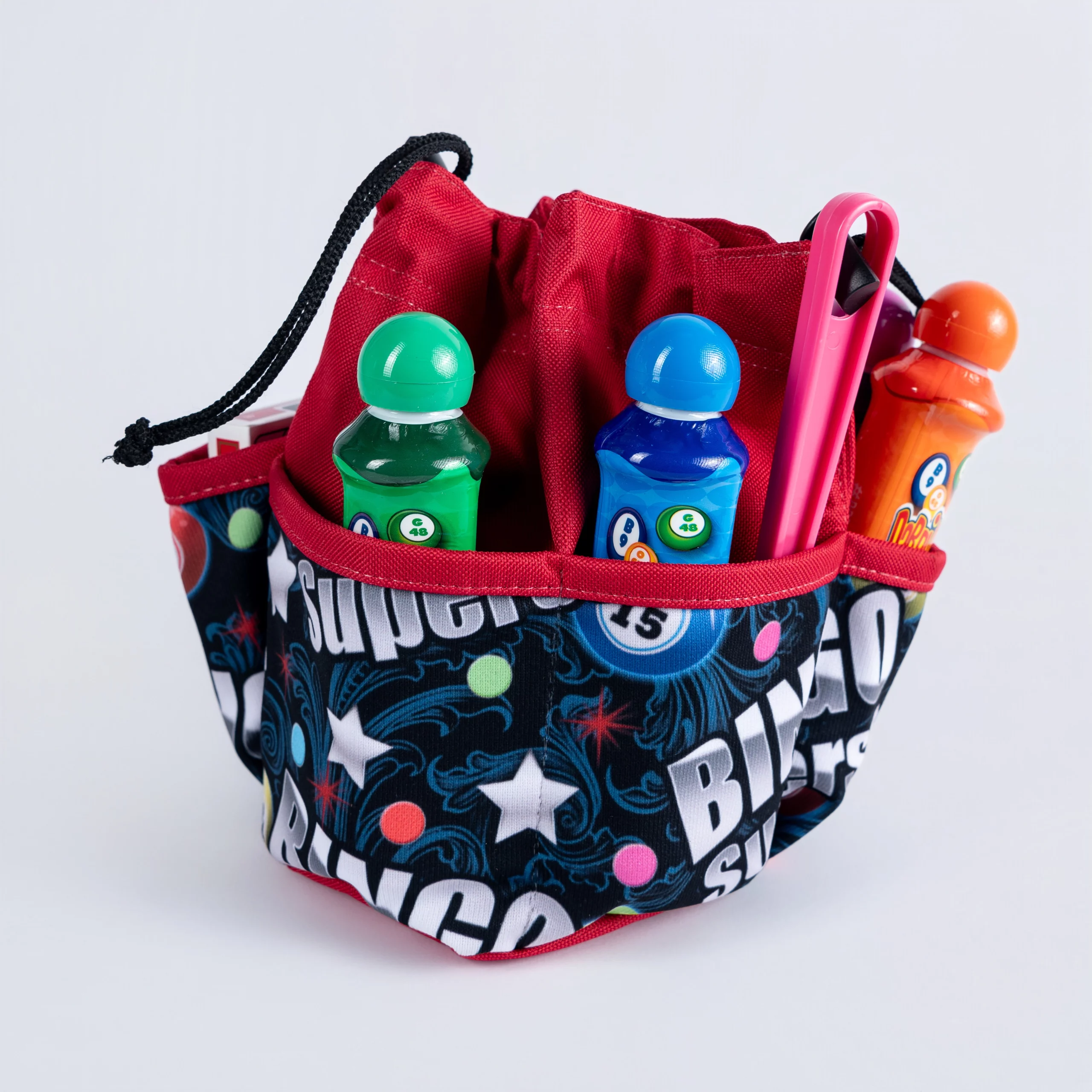 Stay organized with our Bingo Bag, designed for players on the go. Available in 5, 6, and 10 pocket styles, these durable bags keep your daubers, chips, and cards neatly stored and easy to access at every game.