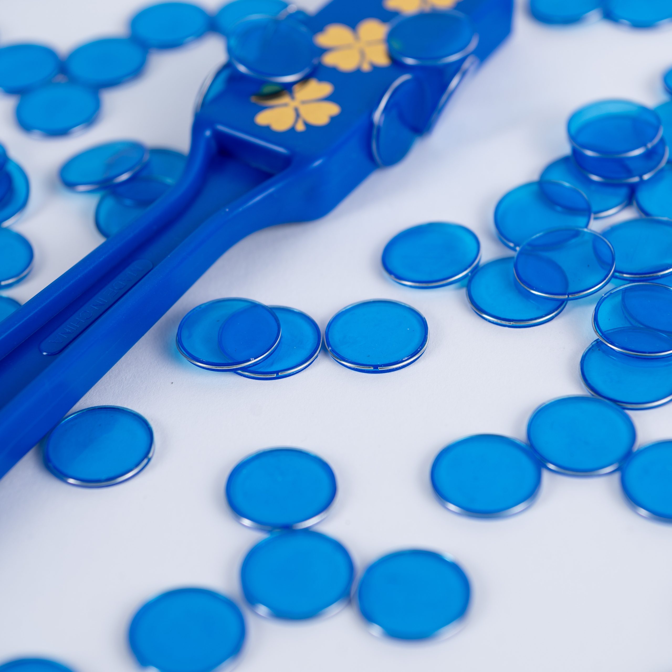 Simplify bingo night with our complete Bingo Wand & Chip Set. The magnetic wand makes cleanup fast and easy, while durable chips keep the game running seamlessly. Available in red and blue.