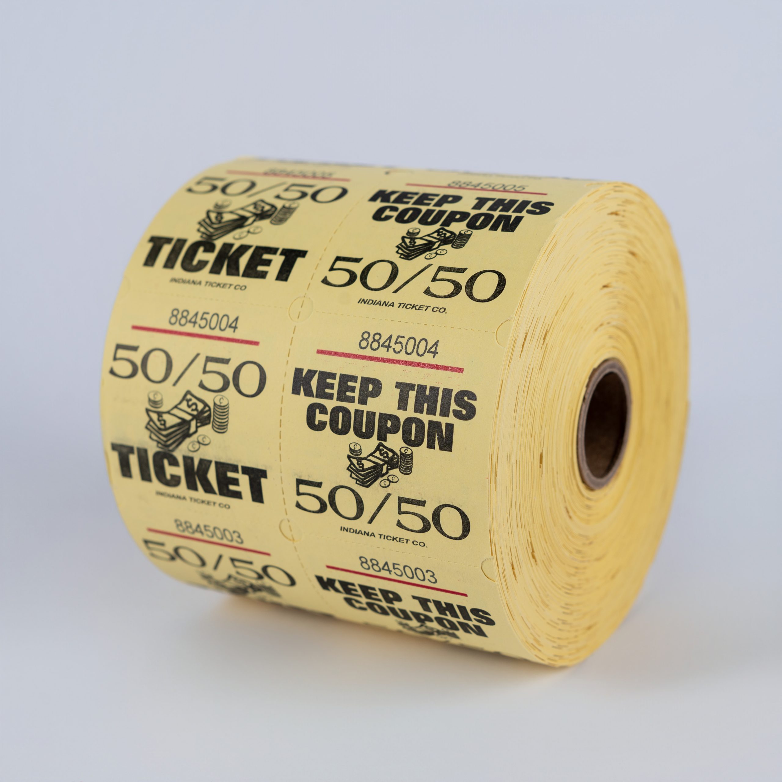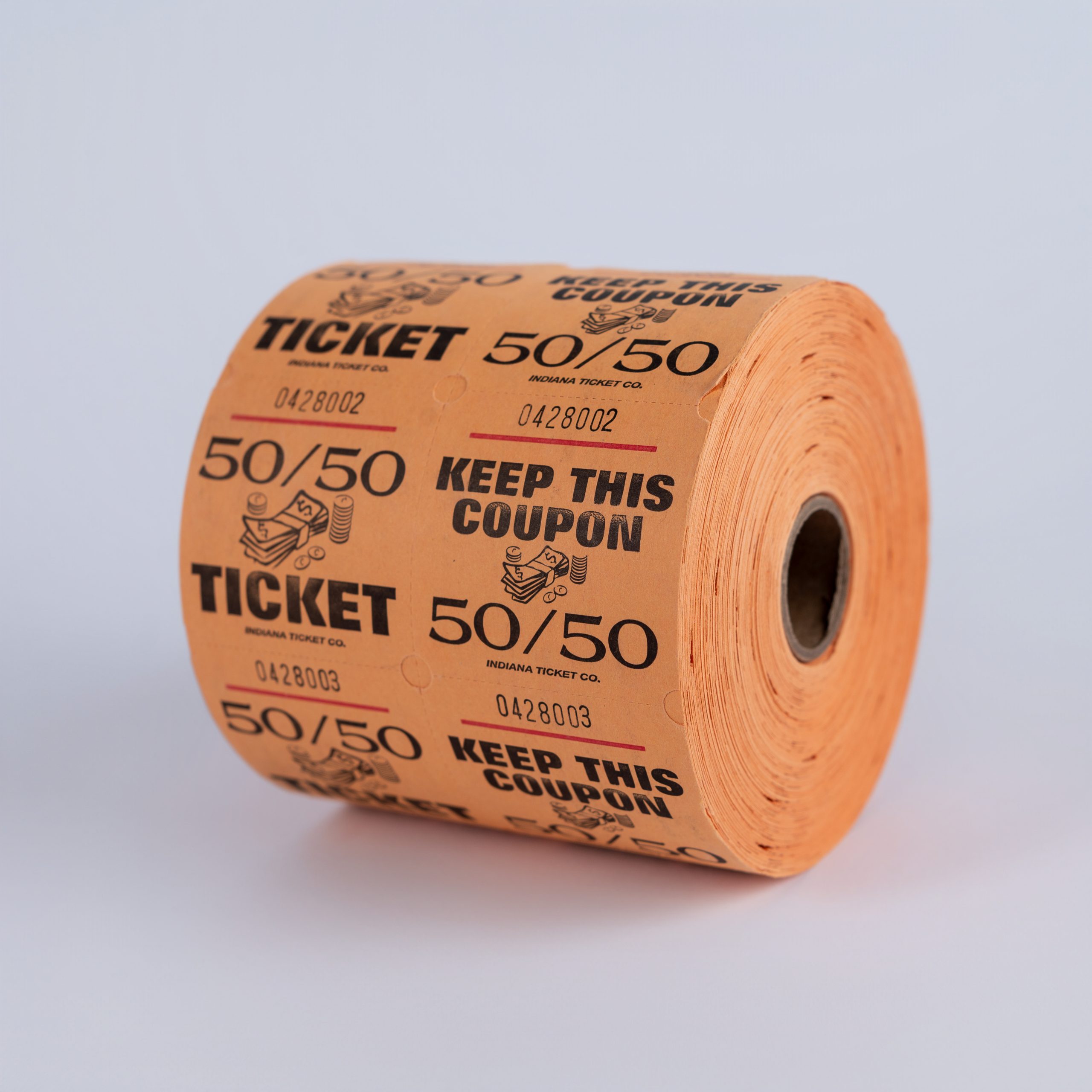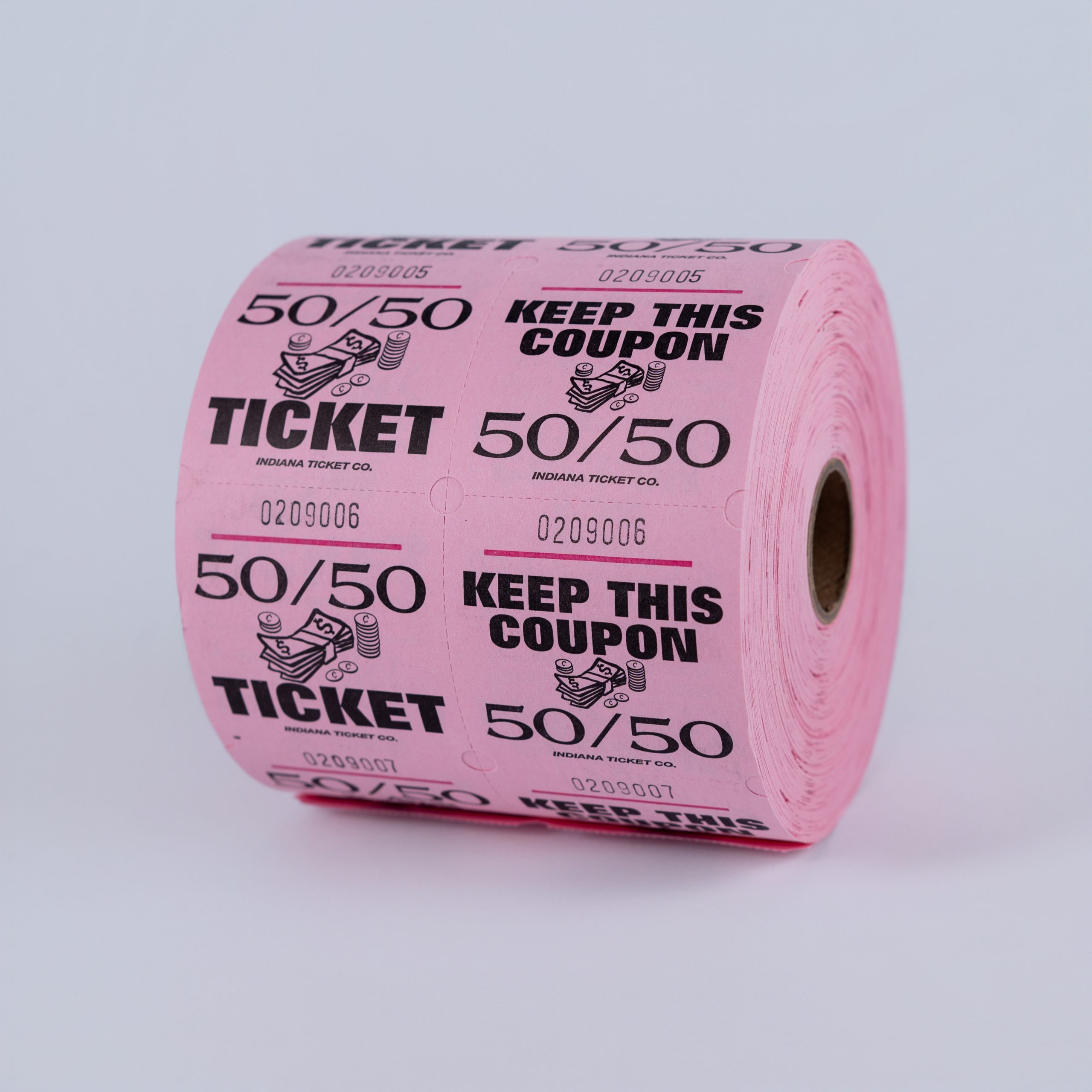 Boost your fundraiser with classic Double Roll 50/50 Tickets. Each roll has 1,000 tickets, perforated for easy splits between buyer and draw. Available in orange, pink, purple, blue, white, green, red, and yellow.