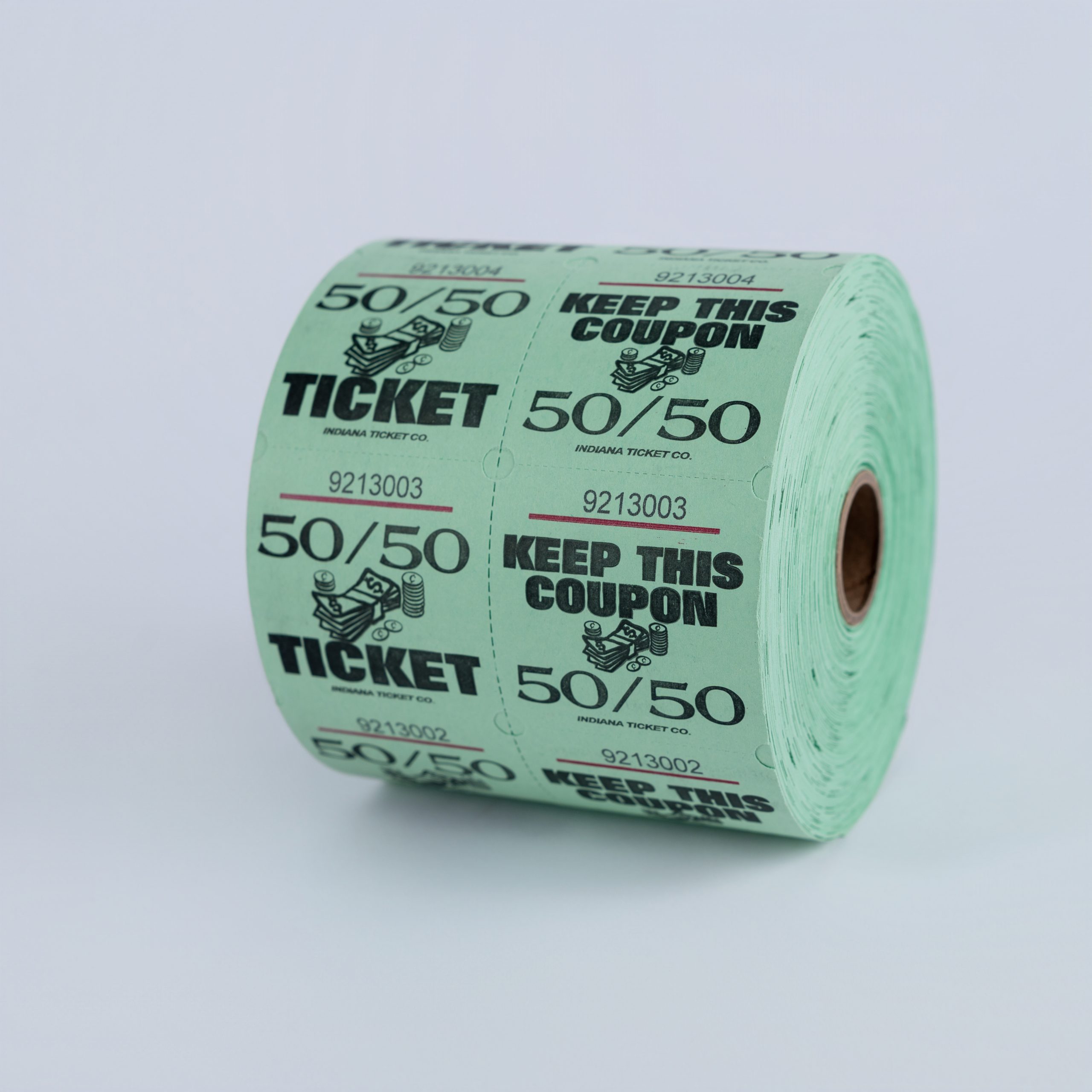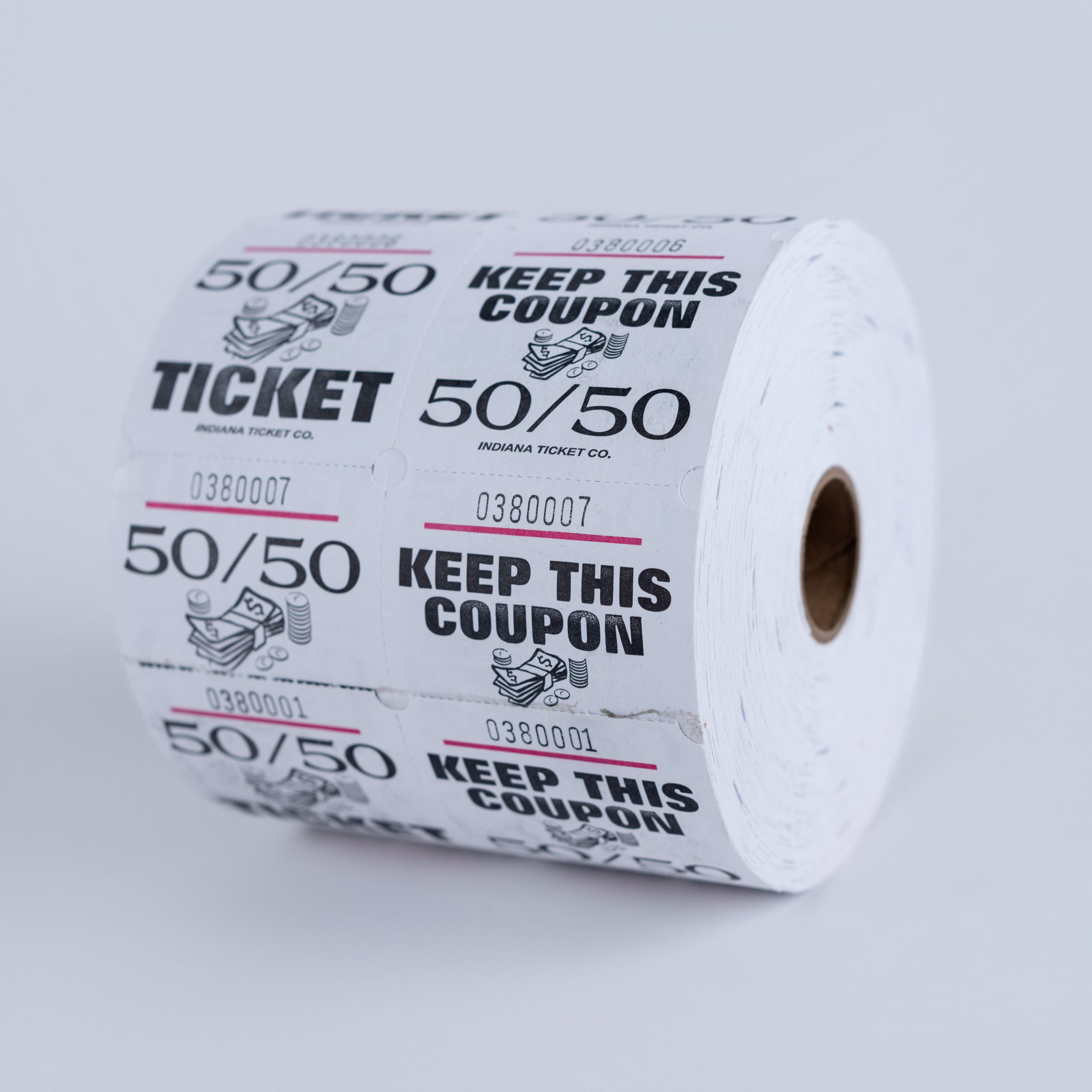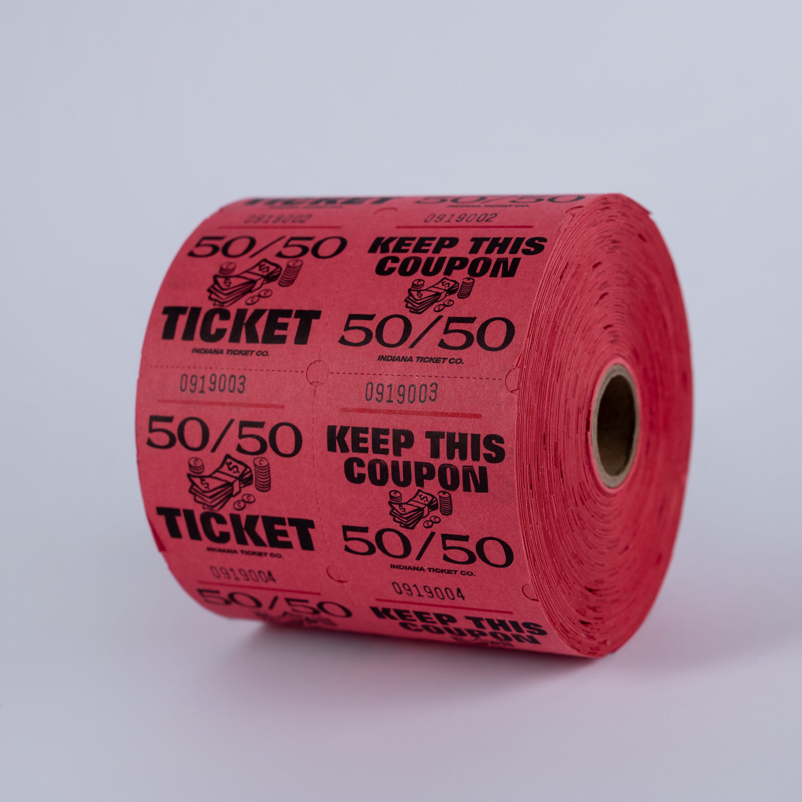 Boost your fundraiser with classic Double Roll 50/50 Tickets. Each roll has 1,000 tickets, perforated for easy splits between buyer and draw. Available in orange, pink, purple, blue, white, green, red, and yellow.