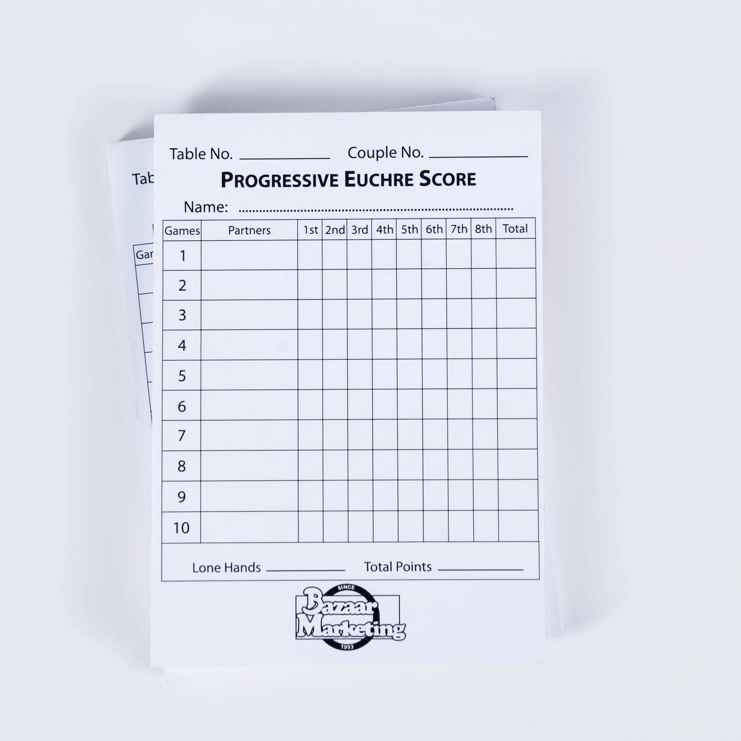 Enjoy organized card games with our Euchre Score Cards sold in convenient 50-count pads. Perfect for tracking scores during casual games, tournaments, or special events.