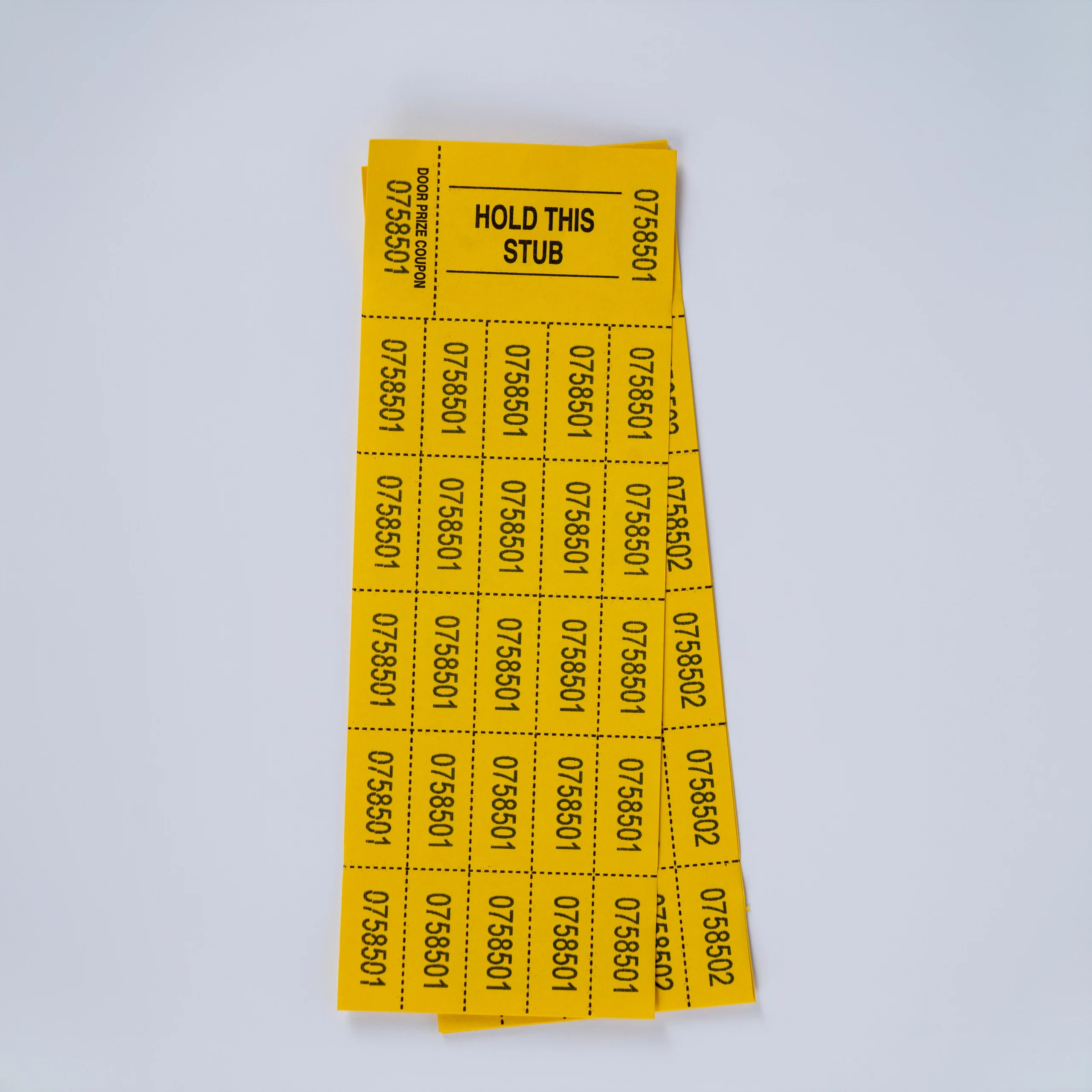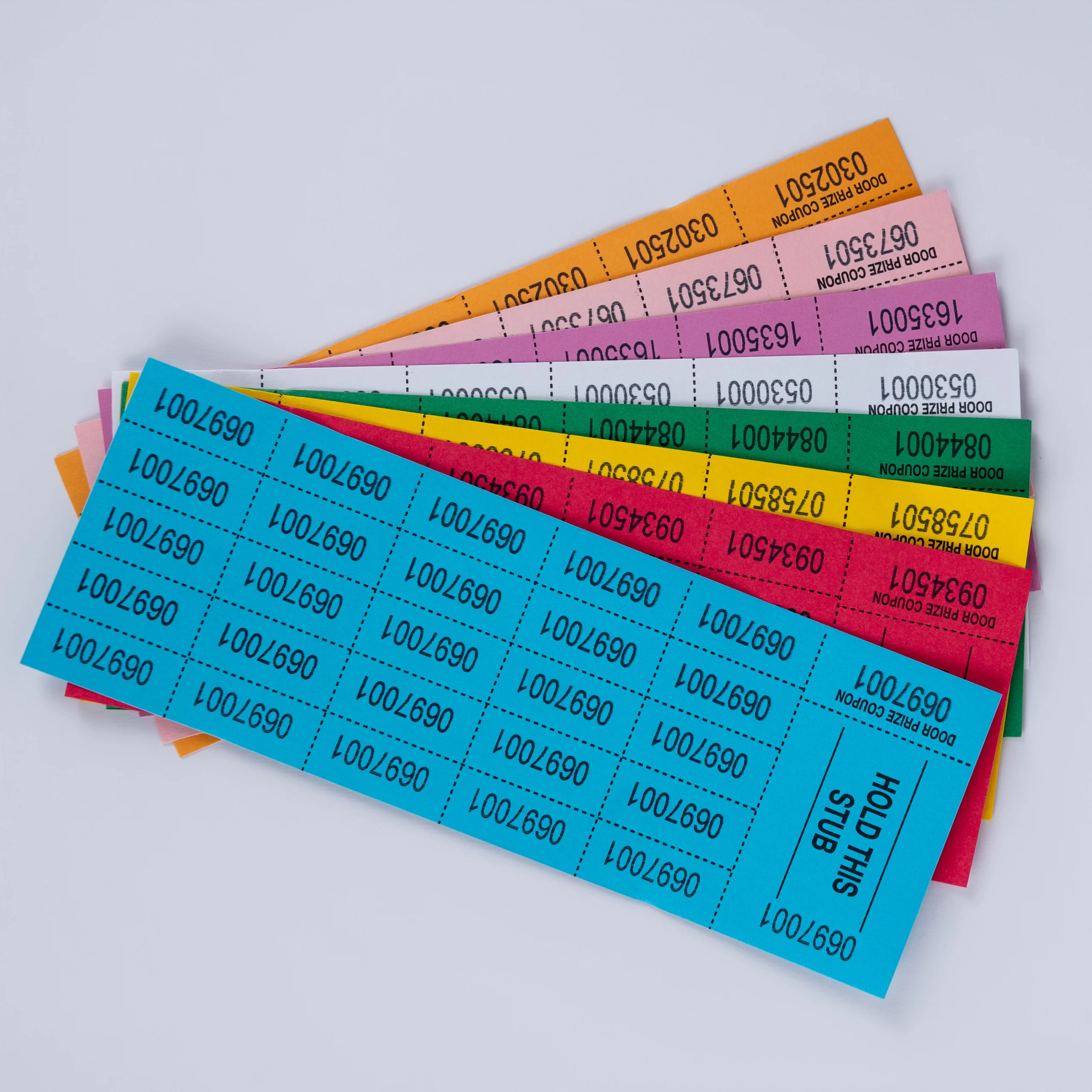 Simplify your fundraising with penny sale tickets. Each sheet (3.2 x 9") is easy to tear and track, making raffles and sales organized and efficient. Available in several colours, including blue, red, yellow, green, white, purple, pink, and orange.